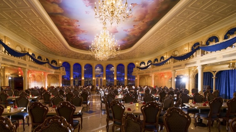 As the musical name implies, the French-inflected restaurant resides inside a castle modeled after the one in "Beauty and the Beast," complete with a gilded ballroom and a gnarly West Wing, wilting rose and all. Located in the rear of Fantasyland towards the middle of the park, Be Our Guest serves prix fixe menus for both lunch and dinner ($70 per adult and $41 per child for dinner), featuring a choice of appetizer and entrée before a dessert trio (yes, the Grey Stuff is delicious). While it serves prix fixe meals, it's still a casual environment where diners can come clad in tank tops, shorts, and Minnie Ears.