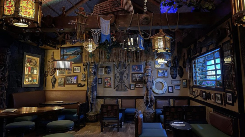 Trader Sam's Grog Grotto is a nondescript (yet wildly popular and hard to get into) tiki bar nestled inside Disney's Polynesian Village Resort. Inspired by Trader Sam, a character from the Jungle Cruise ride in nearby Magic Kingdom, Disney carved out an entire bar to build out an adventurous space filled with tiki torches, puffer fish lights, fake storms, and water guns that bartenders squirt at customers when they order certain cocktails.