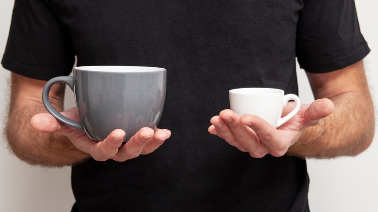 If you're one of those people that find decaf coffee absolutely pointless, you're probably consuming that morning cup of joe for one reason and one reason only: caffeine. Whether you prefer to casually sip on a mug of coffee while you take in the morning news, or stop to shoot a shot of espresso on your walk to work for the ultimate quick jolt of energy, the ultimate end goal is a dose of alertness to get your day started. So which is the better option? Most people tend to assume that espresso has more caffeine compared to a cup of regular drip coffee, but it's not that cut and dry.