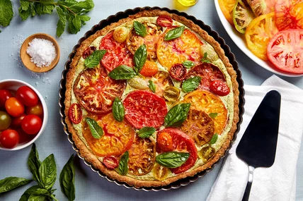 ① First things first: Put one sous-chef on tart duty. That means making the crust and chilling it as soon as possible, then prepping the filling and tomatoes. This way, you'll finish baking the tart completely to cool before your guests arrive.