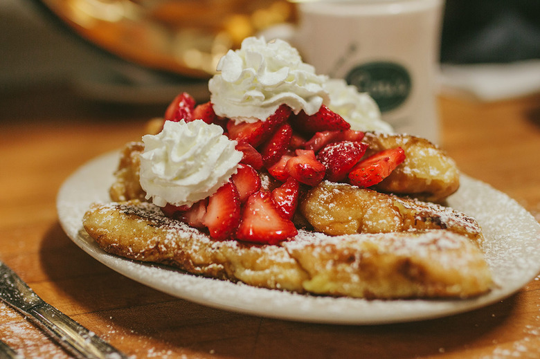 You'd think that a cruller-turned-French toast would be sweet enough to eschew a need for syrup, but considering it comes in an adorable mini bottle and the fact that you're in a hotbed of maple production, you might as well.