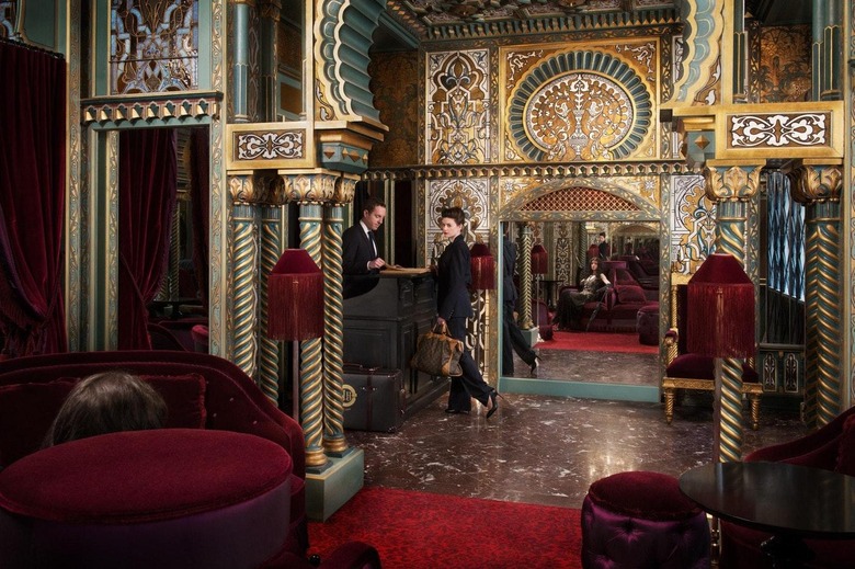 Even small entrances can be larger than life. This 20-room hotel in Paris is housed within a former brothel that was refashioned by designer Jacques Garcia. The lobby oozes luxury, from the enamel paneling of its mosaics to its gilded wooden accents—all dismantled from a 19th-century estate in Brussels and reconstructed here.