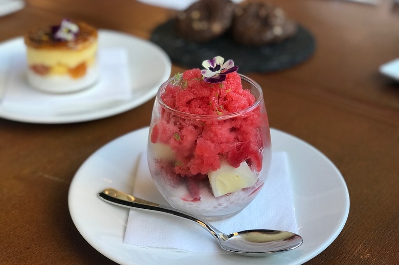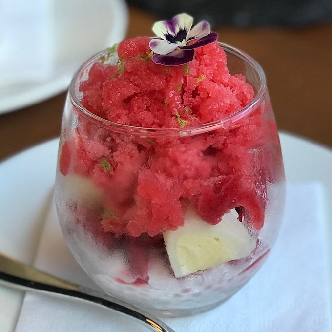 You can't visit Hawaii without digging into a shave ice or two, but don't be fooled: there are a lot of less-than-palatable, neon-colored versions out there. Shave ice is normally crafted with frozen water and sweetened syrups, and Karr-Ueoka goes the extra mile to ensure hers provide an authentic taste of Hawaii. "We use 100 percent fruit that we compress to bring out the natural sweetness and then turn it into a shave ice," she says. "We serve it with haupia tapioca, which is a play on halo-halo (a mix of shave ice and evaporated milk), mochi ice cream, sorbet and freshly-shaved strawberry hibiscus. When it's mango season we offer a mango shave ice, but we also add kaffir lime panna cotta to the bottom."