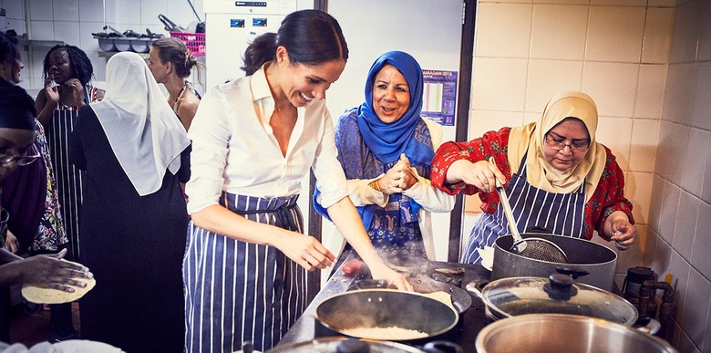 Markle, who has been visiting the Hubb Community Kitchen in West London since January ("Hubb" means "love" in Arabic), wrote the foreword for the book, as the result of her time spent cooking with and getting to know the women. The recipes come from the women themselves, and many have been passed through generations. Proceeds from the book will help enable the kitchen to operate seven days a week, rather than just two, and help expand its community reach.