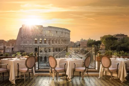 The restaurant's outdoor terrace has sweeping views of the Coliseum.