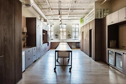 We're proud of our new event space—mobile islands, in-wall taps, impressive pops of color—but it sure didn't build itself. We have FLOAT Studio, a six-year-old, full-service firm, to thank for that. The team handled everything from construction drawings to choosing flatware in order to create a work space that motivates and inspires.
