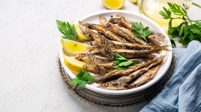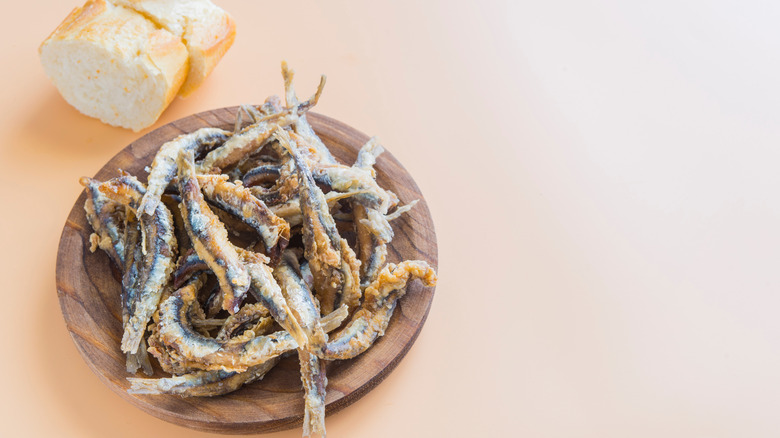 While boquerones fritos refers specifically to fried anchovies, there's another tapa that can be made with a variety of fish: pescado frito (or pescaíto frito in Andalucía). According to Meet the Tapas, this dish originated with the Sephardic Jewish tradition of having fish for lunch after Saturday morning services. Classic fish selections include sardines, cuttlefish, sole, hake, red mullet, and dogfish. It seems that there's an unspoken rule, too, that the fish must come from the sea, and that salmon, trout, sea bass, and cod should not be used for this tapa.