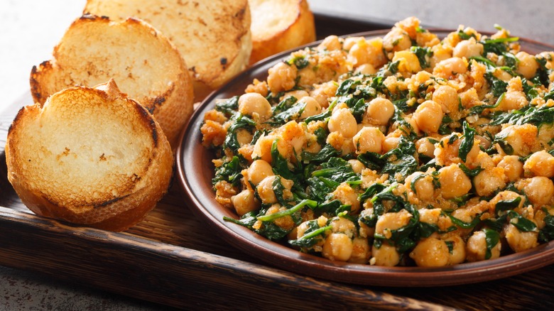Another prominent vegetarian tapa revolves around a stew made with spinach and garbanzo beans. Antonio Gázquez Ortiz, a professor at the University of Extremadura, told La Tienda that garbanzo beans were an important part of Sephardic Jewish kitchens. The legume became a major player in Spanish cuisine as a Jewish stew (adafina) evolved to become cocido, a garbanzo bean stew common in Madrid, says Afar. Down south in Andalucía, the influence saw garbanzos combined with spinach, garlic, paprika, and cumin, and it's a tapa seen in almost every establishment in Sevilla (via Devour).