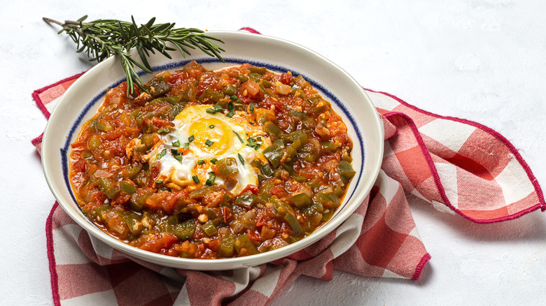 This vegetarian dish is sometimes called pisto and sometimes called pisto manchego, although it doesn't contain any cheese at all. The Independent calls it Spain's version of ratatouille because it's made with similar vegetables — bell peppers, tomatoes, onions, eggplant, and zucchini cooked in high-quality Spanish olive oil, although the specifics can vary depending on the cook. The dish originated in La Mancha in central Spain, and it can be found all over Madrid (via 196 Flavors). Each region has its own variation, with the northern pisto a la bilbaína usually including eggs.