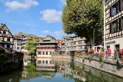 Check out Strasbourg for a flower-clad romantic getaway in the country's eastern region of Alsace. The city's gastronomy, culture and architecture are all heavily influenced by neighboring Germany, highlighted by a gorgeous Gothic Cathedral, cobblestone streets and picturesque lines of half-timbered houses. Expect meat-heavy dishes, sauerkraut and salty pretzels, which you can wash down with the region's local white wines, predominantly made from Riesling, Gewürztraminer or Pinot Gris.