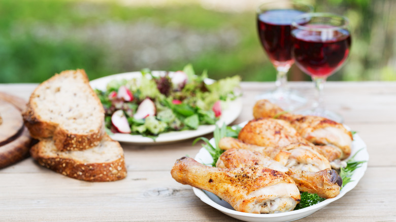 As a light to medium-bodied wine with a pleasant acidity and smooth tannins, pinot noir makes an excellent and versatile pairing with food. Cooler-climate styles make a great match for a charcuterie and cheese board, especially if it features goat cheese. Earthier wines will complement the flavors of mushroom-based dishes, such as risotto or even a mushroom-topped pizza. Meanwhile, fruitier warm-climate styles can stand up to grilled meat — a glass of pinot with a burger is an excellent duo, as highlighted in the book "Big Macs & Burgundy."