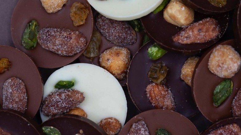 While you can't make a wrong choice here, mendiants, also called beggars, is a classic, almost rustic (in French terms, anyhow) chocolate dotted with dried fruit and nuts. Despite their seeming simplicity, they encompass all the necessary elements of the perfect bite of sweetness, complimented by the satisfying texture of the nuts. Here you can pick up a box of mendiants on their own or find them within a diverse selection of specialties, including florentines and other French classics.