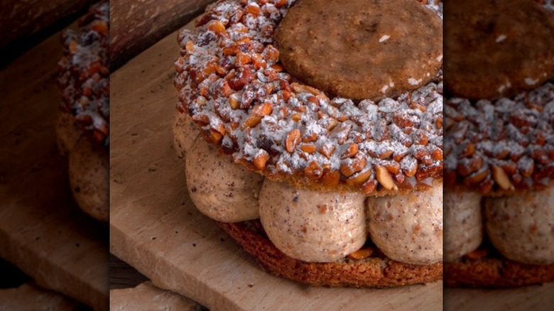 Des Gâteaux et du Pain produces work that feels almost too beautiful to eat, featuring an array of pastries whose contents follow the seasons. Led by pastry chef Claire Damon, known for incorporating fruit and vegetables into her pastries, it's no surprise to see she's outdone herself with this interpretation of a classic French tarte tatin. Damon's experience, including an apprenticeship with Ladurée, has helped pave her path to where she is today. And, while there are indeed no bad choices here, given Damon's love of fruit and her ability to celebrate all of its flavors, we recommend turning your attention to a fruit-based pastry, namely this one, when available, for a truly memorable experience.