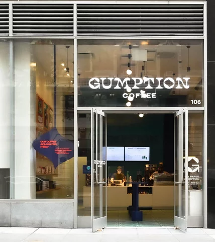 Founded in Sydney in 2003 as Coffee Alchemy, Gumption rolled into the New York market with "gumption," a descriptor of how the duo sees the New York clientele. The coffee line comes with similar descriptors, with single-origin from Oaxaca named "Gratitude" and an everyday bold blend dubbed "Greatness: NYC in a cup."