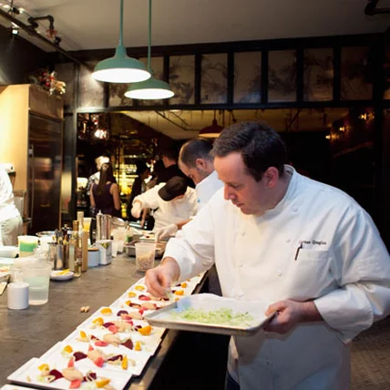 On Thursday, December 15, Tasting Table hosted MasterCard's #Priceless Holiday Dinner in the Tasting Table Test Kitchen & Dining Room. Thirty lucky guests won seats at the dinner by helping spread the word about #pricelessNY on Twitter and Facebook. Guests were greeted at the door with Champagne and enjoyed custom holiday cocktails created by Suzanne Taliercio before sitting down to a five-course dinner. The menu was created and cooked by Union Square Café executive chef Carmen Quagliata and featured products from his chosen artisan, Brooklyn's Heritage Foods USA.