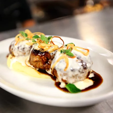 The restaurant at Boulan South Beach hotel is open for breakfast, lunch, dinner and late-night sliders. The dinner menu includes butternut squash soup with five-spice, and meatballs with potato purée-Taleggio foam (pictured).