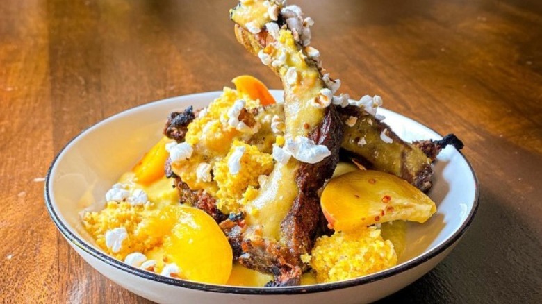 There are tons of great sides to choose from, including the bacon potato salad, house-made salt and vinegar chips, and smoked chicken salad. You also can't forget its more eclectic options: try out the grilled peach glazed baby back ribs with corn and cotija cheese.