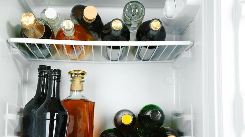 According to the Food Network, premium vodka should be stored between 32 and 39 degrees Fahrenheit. As Thibault told Business Insider that the specific range of temperatures is the same as "the temperature of a slight dilution with ice in a mixing glass." So, in truth, you would be much better off keeping your high-quality vodka in the fridge, which should be between 35 and 38 degrees Fahrenheit, at least if you keep it on the cold side (via Real Simple). The solution is a simple as moving that bottle on level down from the freezer to the fridge.