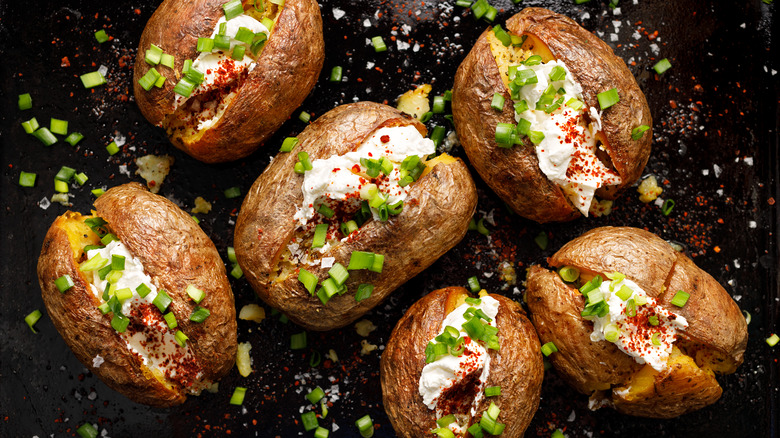 So, try these tricks the next time you bake potatoes for the best ones you've likely ever had at home. You may find that these crispy and perfectly baked potatoes are the best vessels yet for all of your delicious toppings like bacon bits, cheese, sour cream, and chives.