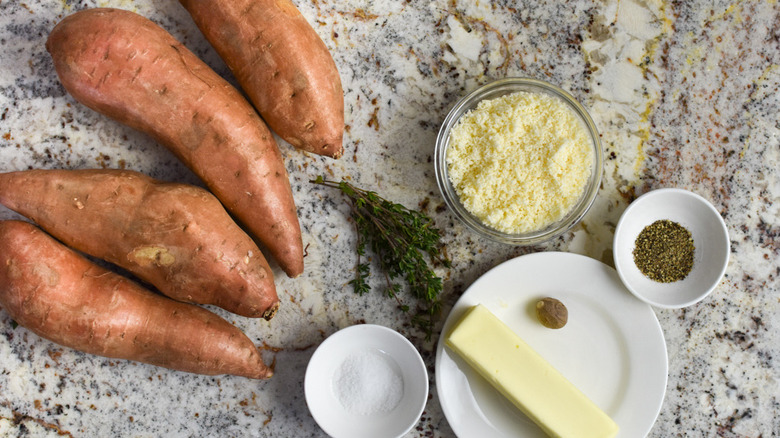 Gather your ingredients to make Parmesan sweet potato stacks