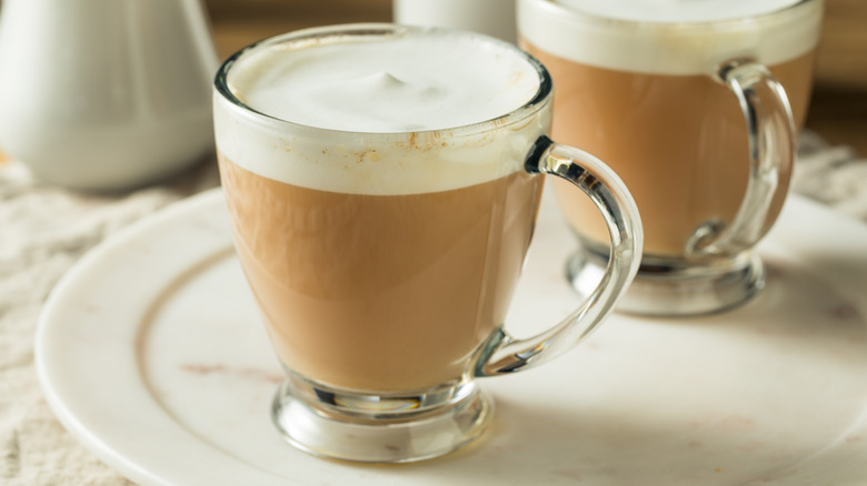 The next ingredient to tackle is the sugar, which baristas will generally use in syrup form. Make sure to ask for no syrup when you place your order and instead, sweeten your drink with stevia, monk fruit sweetener (via Healthline), or your favorite keto option. You'll get the intensity from the espresso shots, and the milk and sweetener will tone it down a notch so the caffeine doesn't hit you all at once.