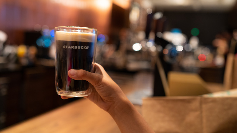 An Americano is just an espresso topped up with hot water, which means that there are only 1 to 2 grams of carbohydrates depending on the size (or shots of espresso in the drink). If you've never tried it, a drip coffee and an Americano are ultimately quite comparable in terms of taste. Spoon University explains that your average cup of coffee is brewed at a lower temperature over a longer duration which can subdue some of the bitterness from the beans. All the same, Starbucks' dark roast is known for being quite robust so the difference in flavor is subtle.