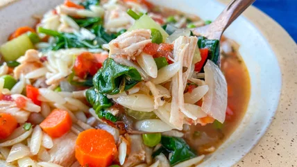 Recipe developer Hayley MacLean came up with this wonderful dish that raises the bar for soup. "This recipe is great because it is so full of healthy, nutritious ingredients! All of the vegetables are packed with vitamins and minerals and the turkey is such a great lean protein," MacLean raves. "Everything comes together in a delicious bowl of warming goodness," she describes. This soup will be a winner at plenty of events as well. MacLean suggests, "to serve [it] around the holidays, when there is plenty of leftover turkey in the fridge and lots of people around to feed! It is hearty, filling, and great to have a big pot of [it] to come to from [the] cold weather." MacLean adds, "We've been enjoying it during our snow days!" Snow day or not, you'll want to try this flavor-packed soup recipe.