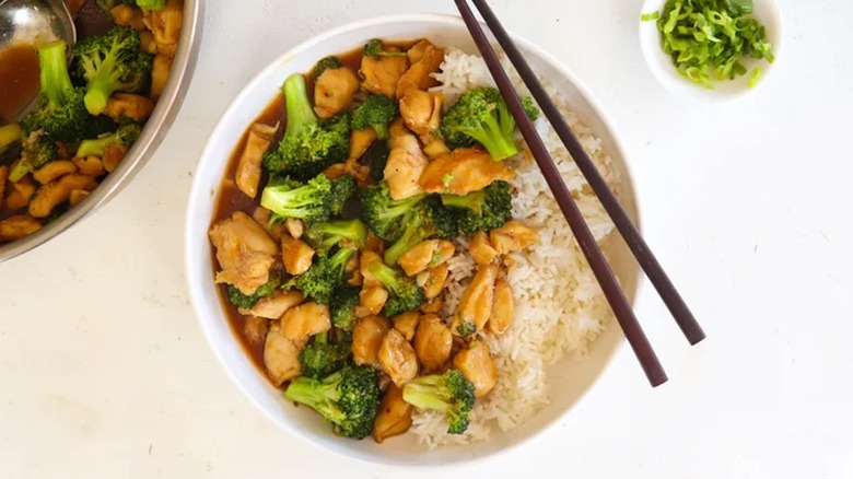 Having leftover rice on hand is a windfall on those days when you're craving takeout but know that it's better for the budget if you eat whatever is in the fridge. We all have those moments, and when we reach them, turning last night's dinner into a tried-and-true version of a classic Chinese-American takeout meal is the move. One example is a play on beef and broccoli, wherein the bovine is swapped for poultry but the rice base remains the same.