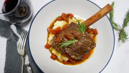 Serve the slow-braised lamb shanks and enjoy