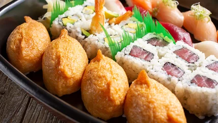 During the Edo period, when bento boxes were first invented, Japanese chefs would separate their food with various plant leaves. This became such a common practice, that the cutting of the leaves turned into an art form called sasagiri (via Saveur). Japanese Food Guide explains that using plant leaves was effective because not only did they keep the flavors separate, they're also naturally antimicrobial and kept food safe from bacteria before refrigeration existed. Over time, however, haran was modernized and is now manufactured out of plastic and cut to look like the pieces of grass you see in your sushi containers.