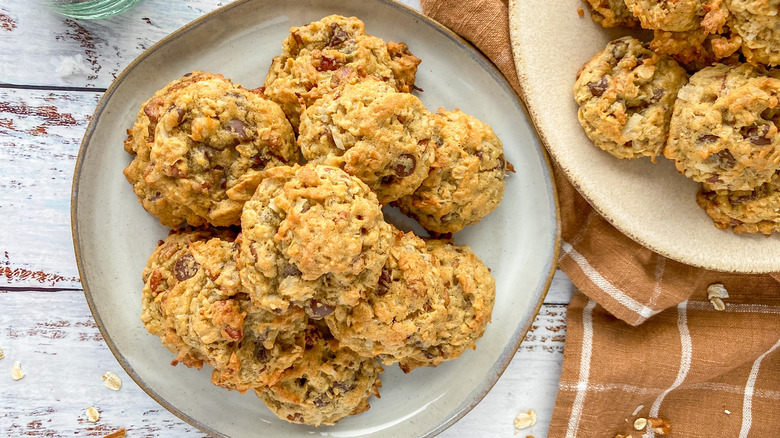 Cowboy cookies are some of the best cookies that you will ever encounter. These yummy treats have a nice, sweet cookie batter with the addition of chocolate chips, shredded coconuts, and pecans — giving you a little burst of different flavors and textures in each and every bite. Recipe developer Hayley MacLean is one of the best at coming up with amazing dessert recipes, and she perfectly describes this unique cookie. "While the origin of the name 'cowboy cookies' is unknown, the theory is that the very first batch of these was made for cowboys to sustain themselves for long working days on the ranch, as they are so full of ingredients," MacLean says.
