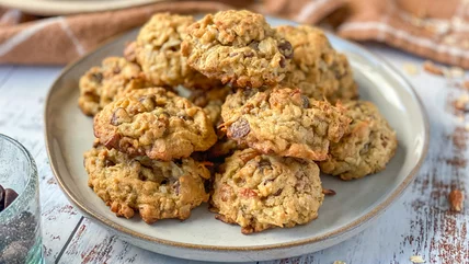 These cookies are absolutely packed with goodness," MacLean continues. "The chocolate chips are velvety and smooth while the pecans give a great crunch and the coconut and oats back it all up with the most amazing chewy texture. They are sure to please any cookie lover!" Keep reading to find out how to make these mouth-watering cookies.