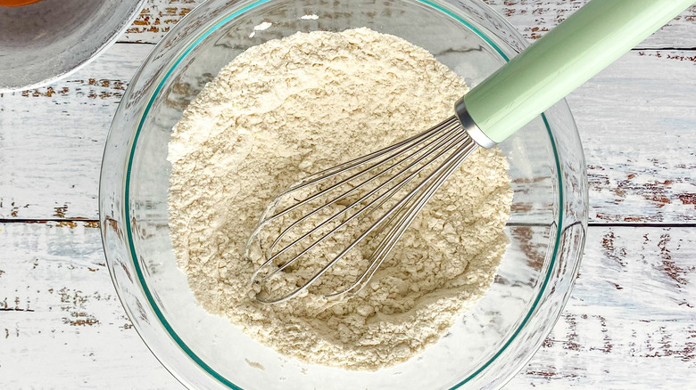 This recipe requires the use of an oven, so you will need to preheat it to start. Simply turn the dial to 375 F. Then, grab a baking sheet and line it with parchment paper. The parchment paper will prevent the cookies from sticking to the baking sheet, making cleanup a little easier. Next, get a medium-sized bowl and toss in the flour and a few other dry ingredients, including baking soda and salt. Whisk them together to combine.