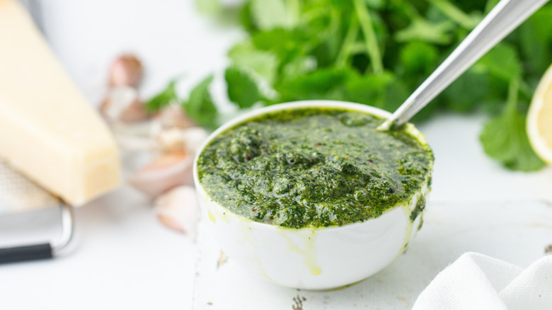 - Transfer the cilantro pesto to a bowl or jar and serve as desired.