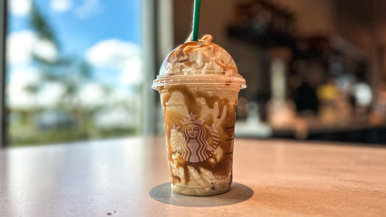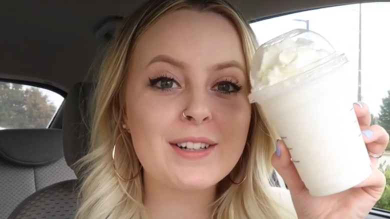 You'll begin by ordering a White Chocolate Mocha Frappuccino in either the coffee or crème format. We tend to prefer coffee-based Frappuccinos, but the crème version is the perfect base for delicious, kid-friendly Starbucks secret menu drinks. To that Frappuccino, add a pump of hazelnut and one of vanilla. Then, ask for some caramel crunchies on top. If you're opting for no whipped cream, those crunchies can also be added right on top of the drink. Be aware that the Betty White Frappuccino is very sweet, so it will feel more like a milkshake than a coffee drink.