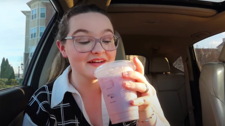 As soon as we heard about this new flavor, we longed to try it with lemonade. It turned out that Starbucks' Lavender Lemonade is the pink treat we didn't know we needed, perfect for an upscale brunch or even as a mocktail. Ordering this one simply involves choosing an iced lemonade and then adding the number of lavender powder scoops you'll need according to your chosen size. In the case of a tall, that's two scoops; a grande should have three, and a venti will take it to four. Your barista will take those lavender scoops, lemonade, and ice and shake them together to combine everything well.