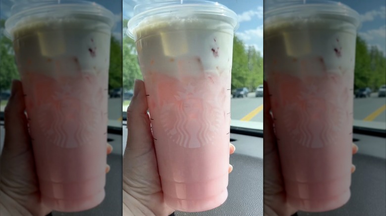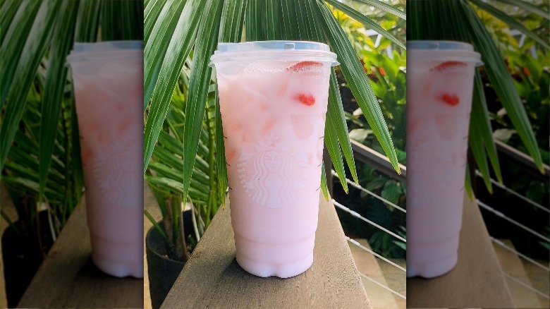 For this one, you'll begin by ordering the Pink Drink. We recommend ordering a venti to make all the numbers work well with this one. Ask for it without the inclusions. Then, add four pumps of the delicious and tart pineapple-ginger syrup, and ask your barista to top it off with Vanilla Sweet Cream Cold Foam made with both strawberry puree and two pumps of that same pineapple ginger syrup blended right in. This sweet cream should go on top of the drink after it has been shaken up, rather than shaken with the drink. The resulting pale pink beverage has a delicious pineapple, coconut, and strawberry flavor that will have you forever giving up the original Pink Drink for this new alternative.