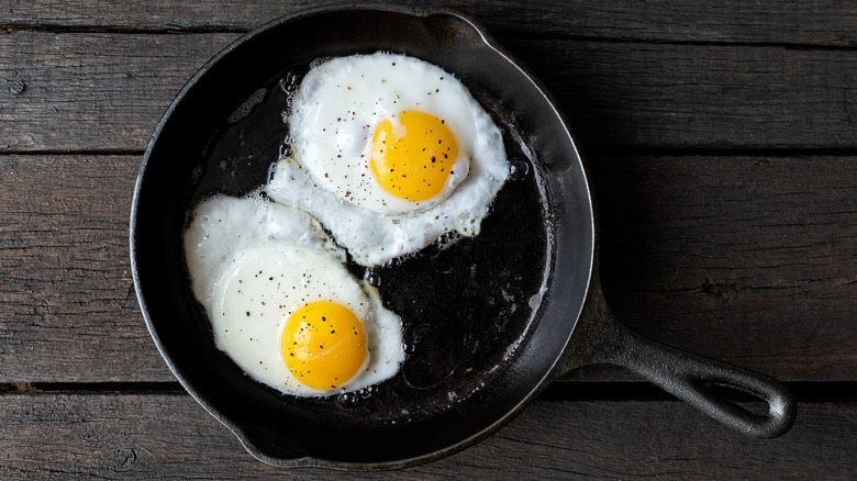The nonstick vs. cast iron vs. stainless steel pan debate is never-ending. We're not here to solve that dilemma. Yet we are here to say that, if you're cooking eggs, then the choice is simple –– a nonstick pan is the go-to option. If an egg sticks to the pan, then the egg can break. Though a nonstick pan might not be ideal for searing, this type of pan can allow your fried eggs to easily slide around on the pan's nonstick surface, which is what we aim for, according to Gear Patrol.