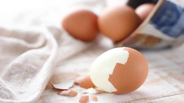 Making hard-boiled eggs doesn't come without its questions as it's so easy to under or overcook them. Plus, the moment you believe they're done, temptation lurks its head, and you want to peel the hard-boiled eggs immediately. You may or may not have heard of an egg ice bath, but the thought process behind this trick is simple. Hard-boiled eggs continue to cook inside their shell, so it's important to place them in an ice bath after they're done with the boiling process. This method is also supposed to make it easier to peel the eggs as it separates the outer egg from the shell, per Mashed.