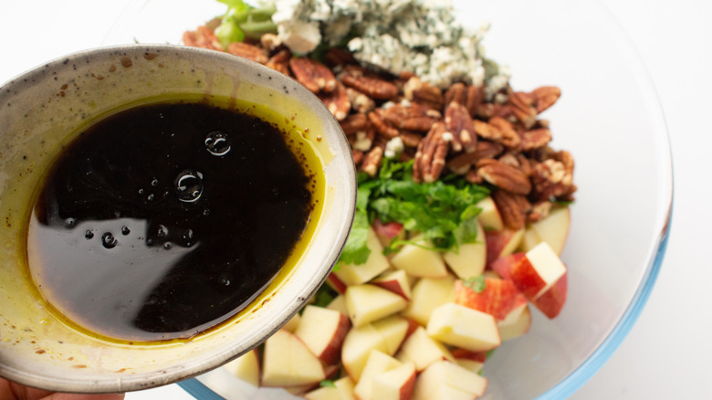 If you had to pick one dish that would perfectly represent the meaning of "light and healthy," you would be choosing wisely if you picked this apple harvest salad. It comes to us courtesy of chef and recipe developer Susan Olayinka of The Flexible Fridge, and it is a perfect fresh and tasty starter to a dinner or a quick and light lunch on its own. And it will take you all of about seven minutes to prepare it. Loaded with apples, pecans, blue cheese, and a sweet honey balsamic vinaigrette, this salad strikes the perfect balance between flavor and nutrition.