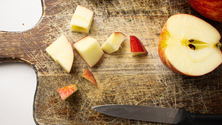 Or, if you want to prep the salad now and eat it later, go ahead with all steps except two, Olayinka says: "Just cut the apples later and don't pour the dressing in just yet." By keeping the apples whole until it's time to use them, they won't brown or lose their crunch. And by dressing the salad last-minute, it will retain its crispness.