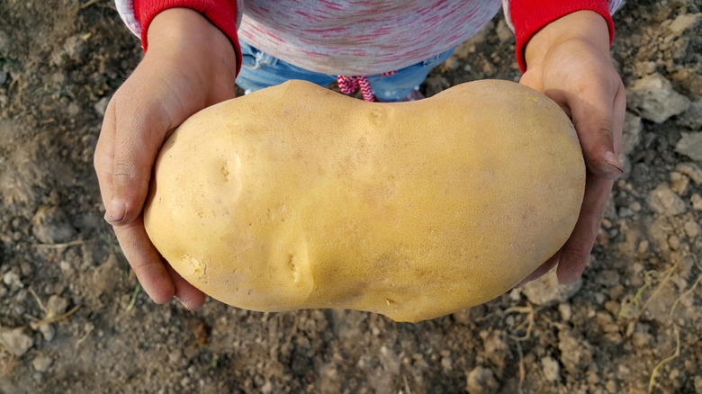 According to CNN Travel, Colin and Donna Craig-Brown found the questionably large potato growing in their yard in November 2021. They even named the potato Dug and submitted their surprisingly large find to Guinness World Records (via Food & Wine). Initially, the potato weighed a whopping 17.4 lbs, but it did lose some mass after being stored in their freezer while waiting for a response from Guinness World Records.