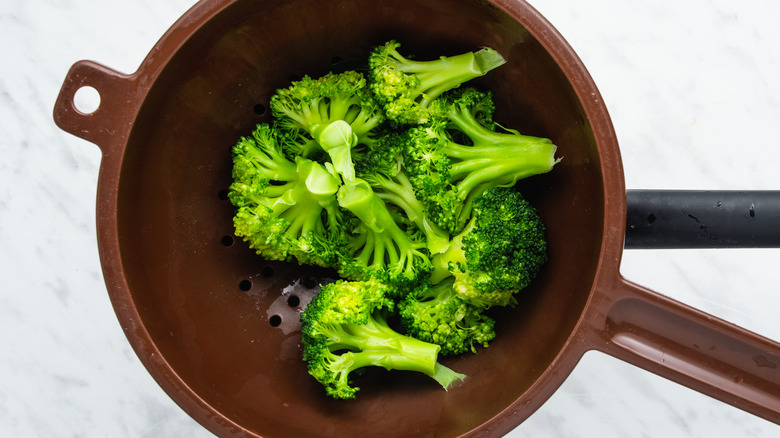 Then, grab a large saucepan, fill it up with water, and place it on your stove. Bring the water to a boil and, once you see bubbles reach the surface, toss in the broccoli. Cook it for about four minutes and then drain the liquid with a colander.