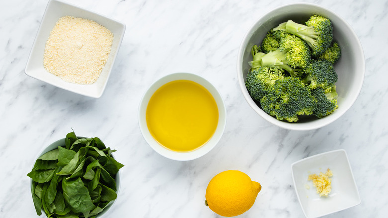 Gather the ingredients to make broccoli pesto