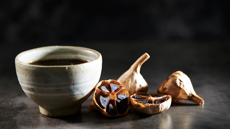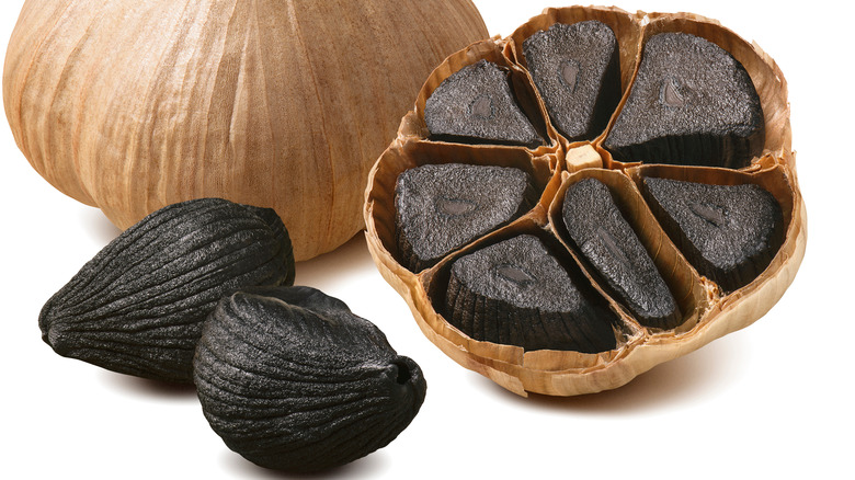 According to Science Direct, black garlic is simply regular garlic that has been fermented to create a different flavor profile. But there are some other differences between regular garlic and black garlic. First of all, black garlic has fewer allicin compounds, which means it does not have the same strong smell you might expect from garlic. For those who abhor the smell of garlic but enjoy the flavor, that's a major win. Black garlic also contains a lot of antioxidants, according to Allrecipes.