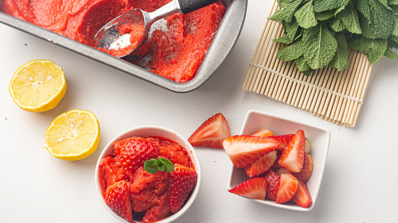 Here at the Tasting Table, we always spice up simplicity. Olayinka blended up 3 ingredients in 5 easy steps to make this fruitful delicacy. All you'll need is 3 cups of frozen strawberries, ½ cup of very fine sugar, and the juice of 1 lemon. Our developer mentions this is vegetarian and vegan-approved, "Sorbet has no cream or milk. [It's] made from fruits and sugar." As far as sweet indulgences go, it doesn't sound too bad.