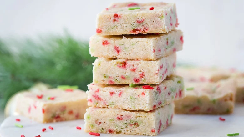 Shortbread cookies are delightful any time of year, but if you're hoping to create a scrumptious shortbread cookie with a bit of a festive twist, look no further. These cookies are sure to delight both the young and young at heart in your family. The traditional shortbread recipe makes for a light and crumbly cookie, but a dash of red and green sprinkles gives them a little holiday flair. Bake these cookies at a low temperature for just over half an hour and you have a delicious treat that pairs well with a frosty glass of milk.