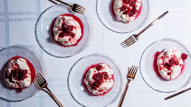 Another Passover-approved recipe, these hazelnut meringue cookies are likewise gluten-free. The meringue cookies alone come together as would any traditional meringue cookies, but it's the Manischewitz-rhubarb conserva that goes atop the cookies that really shines. Blending Manischewitz wine with toasted coriander and anise seeds, as well as diced rhubarb and lemon, the conserva is good enough to eat all on its own. Plus, this recipe isn't just gluten-free; it's also dairy-free as well.