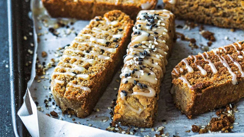 If you've never made biscotti before, don't be intimidated. These sliced, crisp cookies are simple to make and look oh-so-impressive in a cookie jar. This recipe incorporates a few unique ingredients that really make these biscotti stand out from what you'll find in the grocery store. Cardamom, tahini, and honey combine in the batter, while the glaze mixes more honey with coconut butter and coconut milk. Sprinkle your glazed biscotti with sesame seeds for an even bigger upgrade.