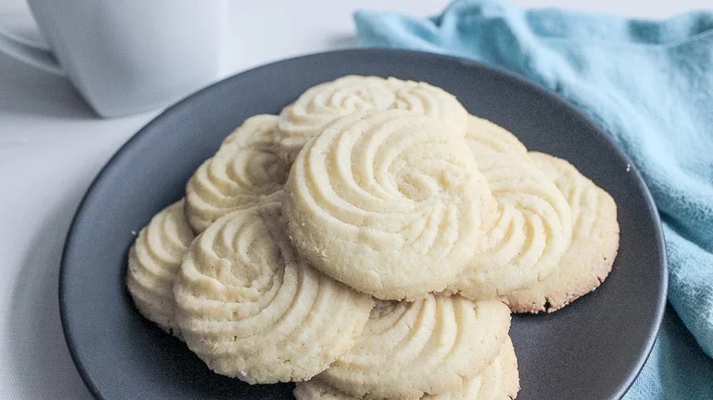 Ah, butter cookies. If you've ever opened up a royal blue tin of butter cookies only to be wildly disappointed at the sewing kit you find in place of a sweet treat, this recipe is for you. Never be disappointed by a lack of butter cookies again, thanks to this old-fashioned cookie recipe that requires minimal ingredients — all of which are probably already in your fridge and pantry if you're a frequent home baker.